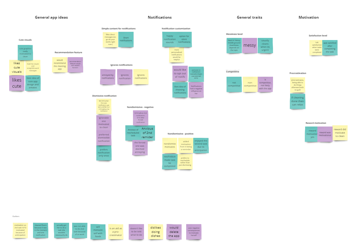 Our usability testing methods were all in person as our app is completely about cleaning your room or personal space. In person testing allowed us to truly understand the weaknesses and strengths of the app and helped us decide what constraints were present. Most of the time users were confused as to what our app was; if it was a game or not as an example.