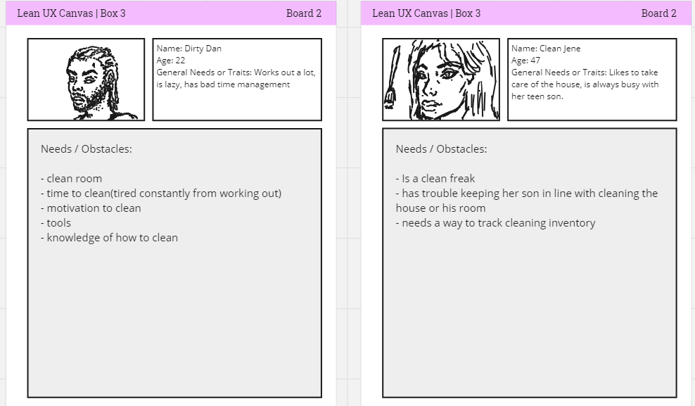 We then created our personas which we assumed our users would be based upon our applications target audience. We revalidated these personas later and changed many traits as we progressed in the project. For Sprint 1 we had 2 personas.